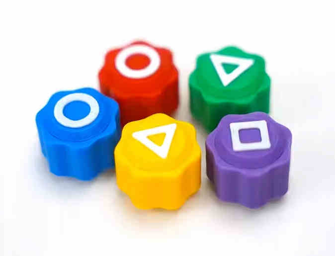 Barvy kostek: Červená, fialová, modrá, zelená, žlutá