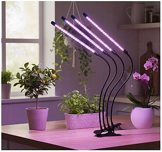 LED lampa pro osvětlení rostlin – 4 ramena na flexibilních ramenech s klipem/stojanemZajistěte svým rostlinám optimální podmínky pro růst po celý rok! Naše LED osvětlení rostlin se 4 flexibilními rameny je perfektním řešením pro pěstování květin, bylin, zeleniny a sazenic v interiéru. Díky speciálně zvolenému světelnému spektru (červené a modré LED diody) světlo podporuje fotosyntézu a urychluje vývoj rostlin v každé fázi růstu.