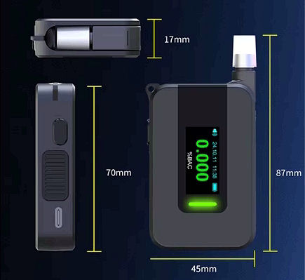 Kompaktní alkoholtester s rychlou odezvou a vícebarevným OLED displayem, na kterém se naměřená hodnota přesně číselně zobrazí.
