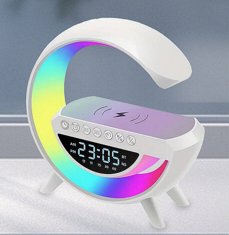 Multifunkční lampa s indukční QI nabíječkou, Bluetooth LED RGB reproduktorem a hodinami s funkcí budíku je univerzální lampa, která se bude dobře hodit do každodenního života.Bezdrátové nabíjení – nemusíte se bát otravných kabelů! Světlo je vybaveno funkcí bezdrátového nabíjení QI, díky které je nabíjení vašich zařízení extrémně jednoduché a pohodlné.