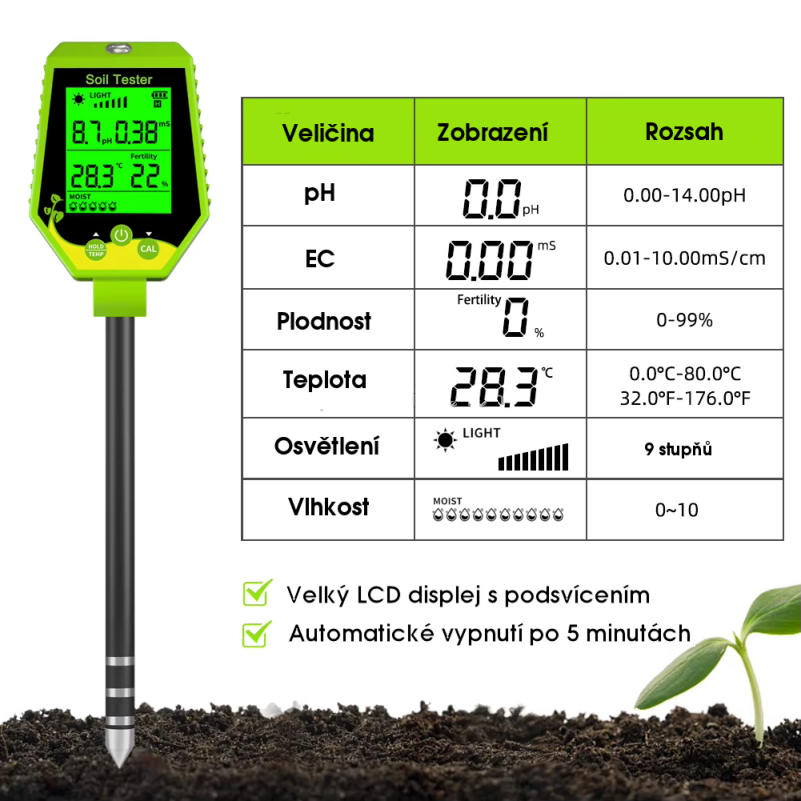 Tento univerzální přístroj Vám pomůže zajistit ideální kvalitu půdy pro Vaše rostliny.