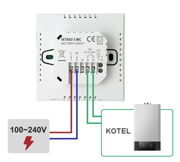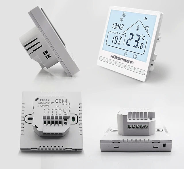 Termostat programovatelný týdenní HT047-IE-NC 3A s vnitřním a externím čidlem.Díky bezpotenciálovému kontaktu je vhodný například pro spínání kotlů.