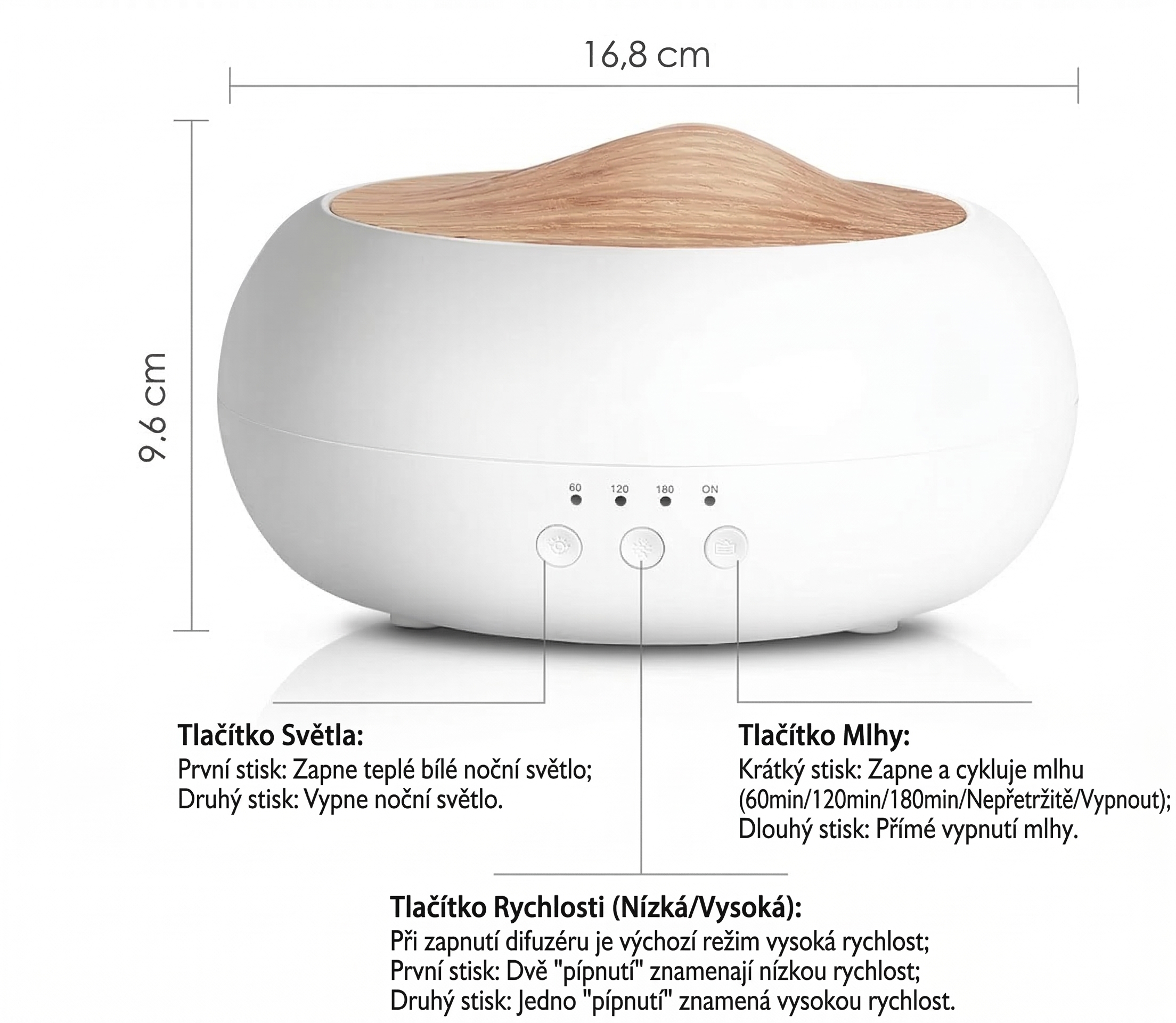 Duležité upozornení: Používejte výhradne kvalitní 100% prírodní esenciální oleje urcené pro aromaterapii. Syntetické vonné oleje do aromalamp nejsou pro ultrazvukové difuzéry vhodné a mohou prístroj poškodit.