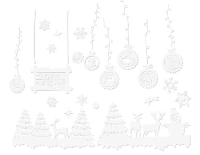 Tyto dekorace se lepí bez použití lepidla – stačí je jemně přitlačit na čisté sklo, zrcadlo nebo obklad a vytvoříte jedinečnou vánoční výzdobu během několika minut.